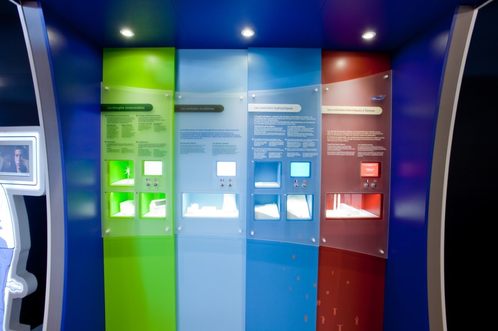 Les Espaces Découverte sont des expositions de taille variable, qui ont pour vocation d’informer le public sur les activités d’EDF au sein des divers centres de production d’électricité.