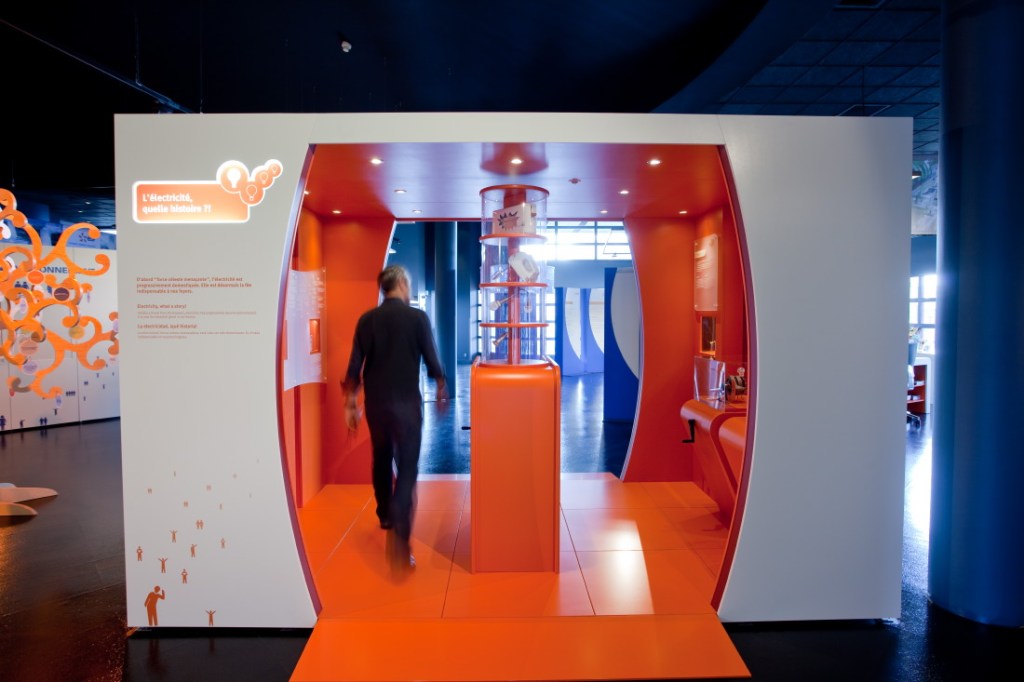 Les Espaces découverte, ouverts au public au sein des centrales EDF, présentent la manière dont l’électricité est produite. Un dispositif rappelle les moments historique importants de l’histoire de l’électricité. En particulier, lorsque les visiteurs s’approchent d’un des objets emblématiques d’une découverte comme la pile de Volta ou la cage de Faraday, le personnage historique correspondant s’anime et détaille son invention.