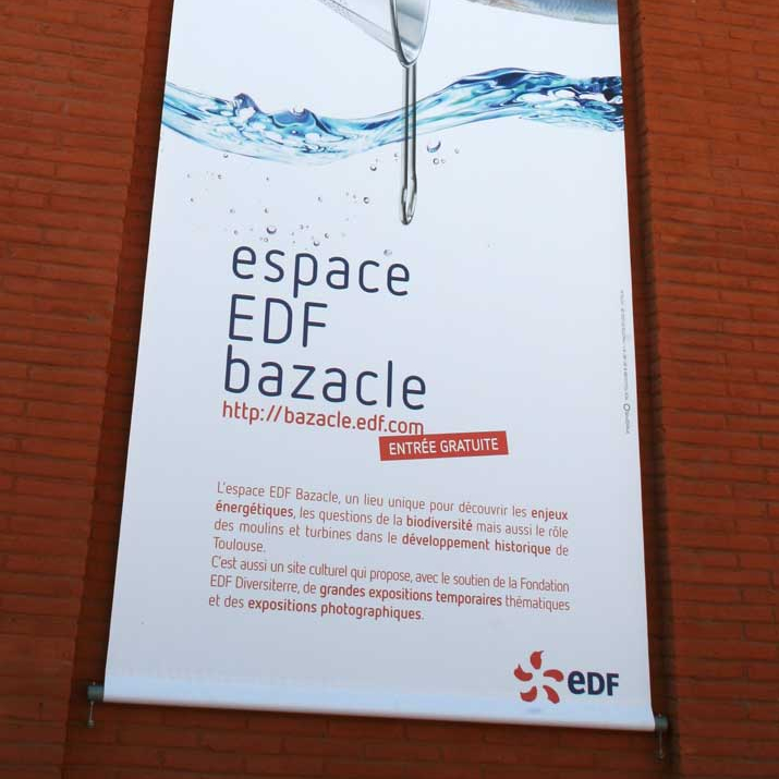 Le Bazacle est un barrage historique situé en plein centre de Toulouse. Il s’agissait d’expliquer comment l’électricité est produite, de donner un aperçu de la richesse historique et culturelle de la ville et enfin de sensibiliser à la fragilité de l’environnement.