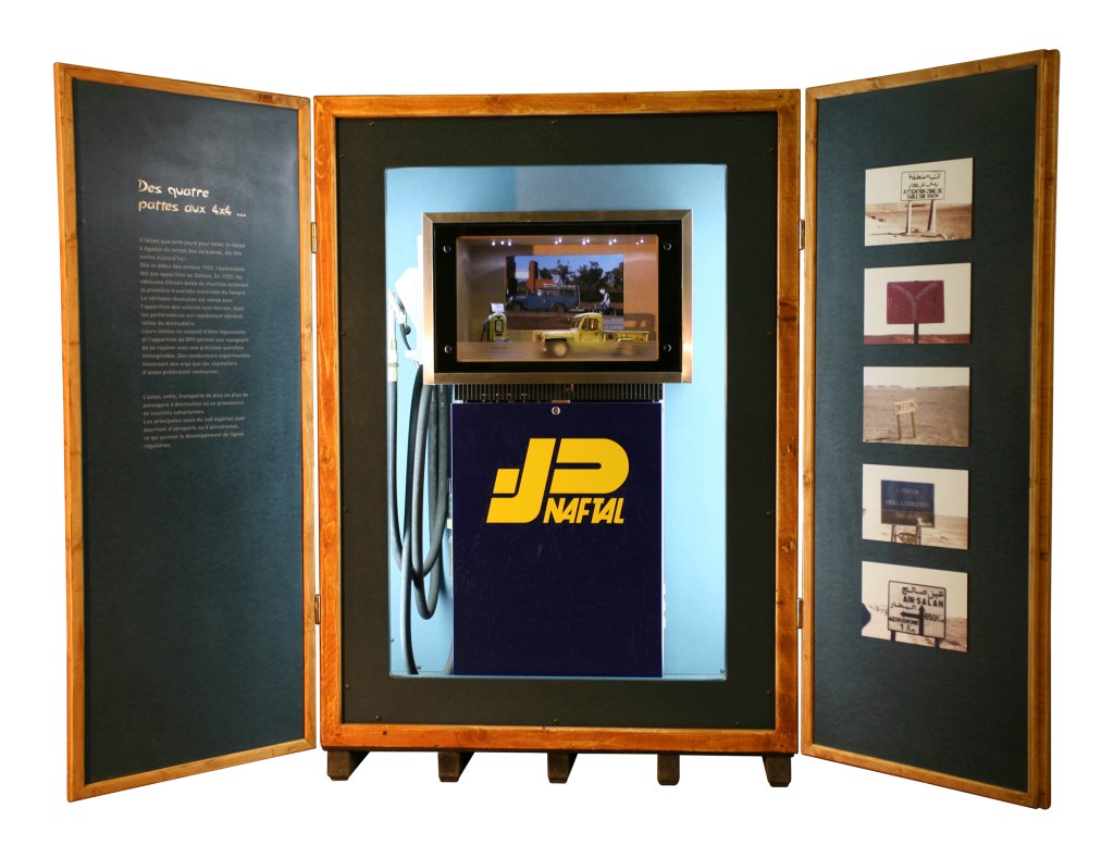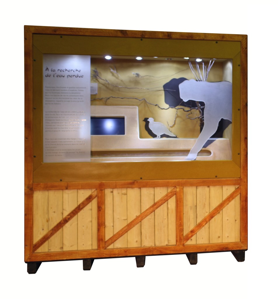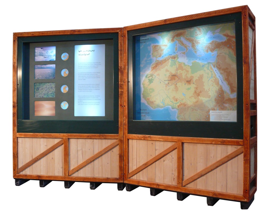 La construction de vitrines adaptées évoque le voyage et simplifient le transport comme la manutention.