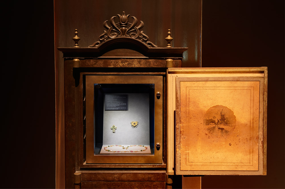 Pour les besoins de l’exposition Perles, nous avions prospecté, acheté puis transformé des coffres-forts anciens des comptoirs de la compagnie des Indes Orientales. Devenus par nos soins vitrines de haute sécurité, ils ont servi à magnifier les collections de perles des musées du Qatar, au point d’être devenus la signature de cette exposition.